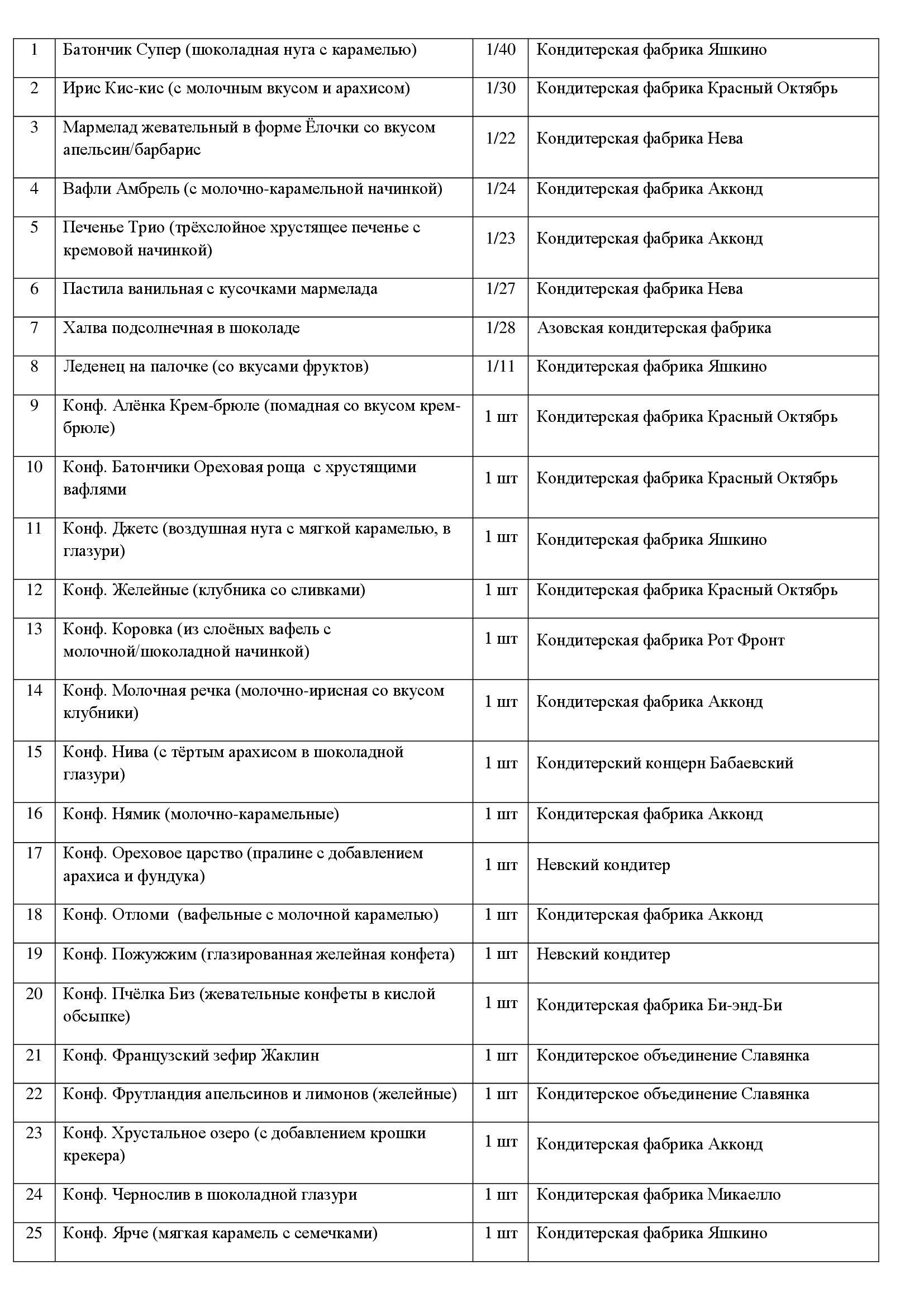 Состав подарка «Снегири»